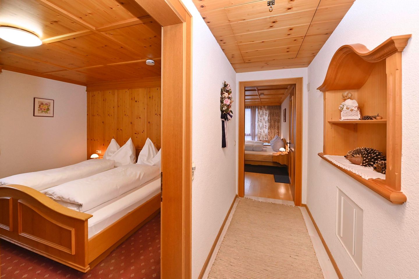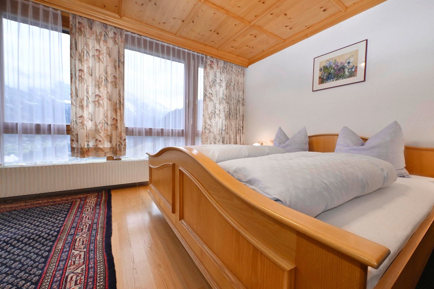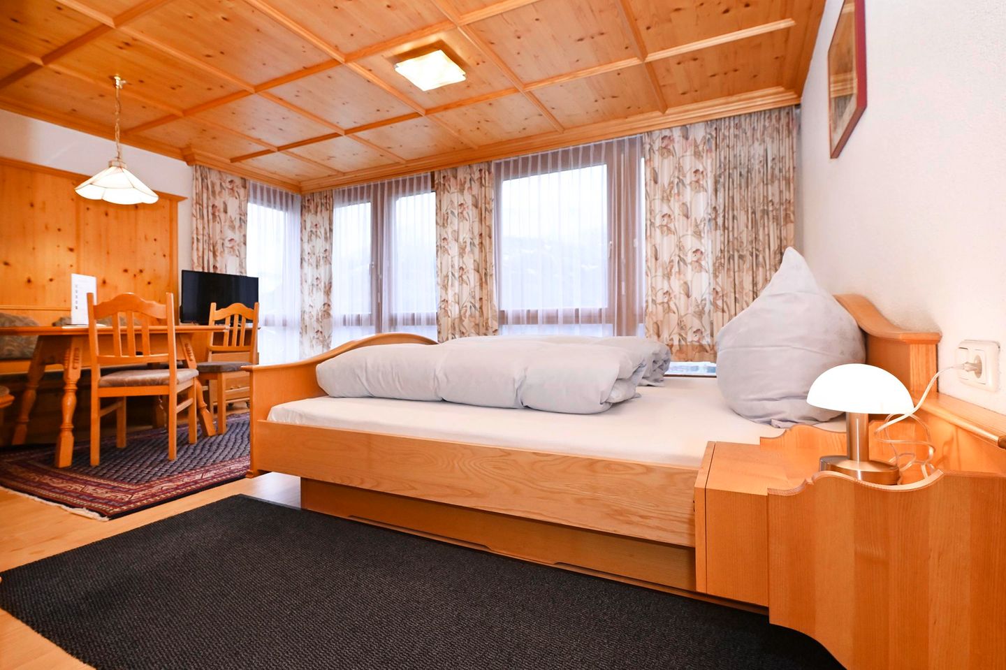 Das großzügige Panoramaschlafzimmer verfügt über ein bequemes Doppelbett, eine kleine Sitz- und Essecke, Kabel-TV, ein eigenes Bad mit Dusche/WC sowie ein großes Panoramafenster, das den Blick auf die beeindruckende Berglandschaft freigibt.